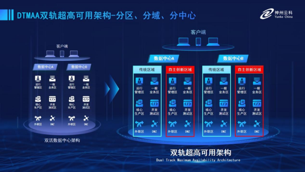 为帮助金融客户更好地应对数字经济时代对可持续性的高要求,实现“信创”与“数字化”齐头并进,米兰·(milan)中国推出了双轨超高可用架构。该架构在双活数据中心的分区调度基础上,增加信创域和非信创域的分域调度,实行信创域与传统域应用全量部署,使双中心运营变为双中心四区域并行运行,互为多活,将“0到1”的单轨建设道路变为分区分域协同的多活双轨超高可用架构。帮助客户在新架构下,保障“信创”的同时解决性能瓶颈,提升稳定性,保证应用可持续性,最终实现信创区域和非信创区域的平滑过渡,完成国产化替代目标。