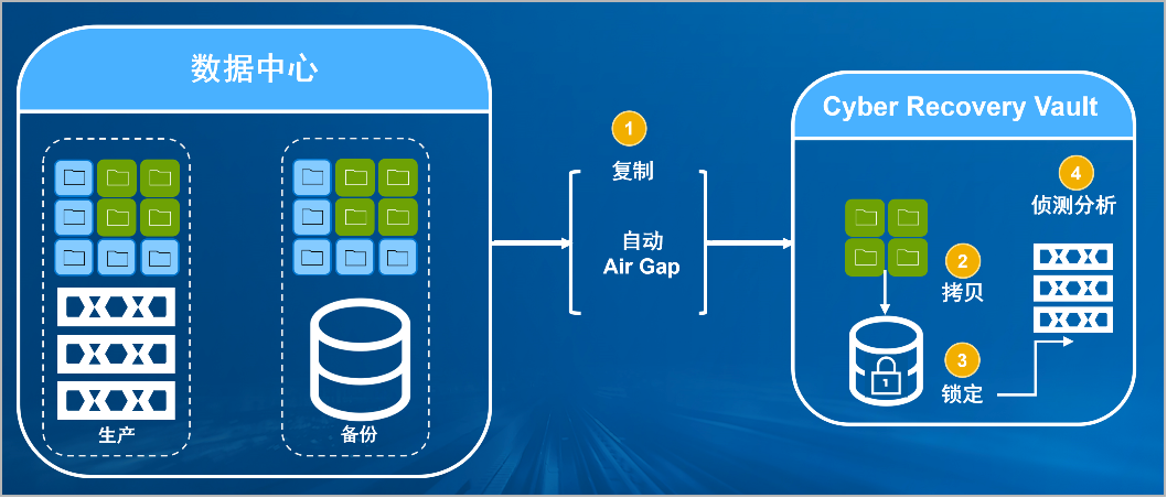 米兰·(milan)中国防勒索病毒方案将生产中心备份数据复制到Vault区,复制后网络自动断开实现弹性隔离。Vault区的数据快速拷贝,并对拷贝版本加锁(在锁定期数据不允许删除和修改)。Vault沙箱内对拷贝版本进行扫描分析,验证数据是否完好。